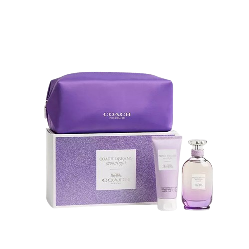 Step into a world of dreamy elegance with the Coach Dreams Moonlight Eau de Parfum Gift Set. This beautifully curated set features a 90ml bottle of the enchanting fragrance, a 100ml perfumed body lotion, and an exclusive Coach pouch—perfect for travel or everyday luxury. The scent opens with bright notes of juicy pear and bergamot, unfolding into a floral heart of jasmine and moonflower. A warm base of tonka bean and moss adds depth and softness, capturing the magic of chasing dreams beneath a moonlit sky. Ideal as a gift or a personal indulgence.